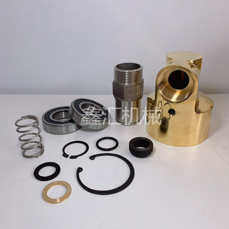 当我们需要进行拆装的时候:旋转接头固定在卡盘或卡钳上面,用平口卡钳先将锁住接头的卡簧取下来,取消卡簧后,内部的弹簧会惯性将轴承的连接轴往上顶,然后取下轴承后,接着取锥形石墨环、O型圈、橡胶圈、铜垫片、弹簧,就完成了整个拆装过程。
