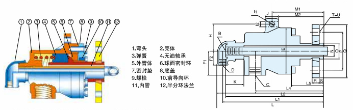 2、拆卸;取下后,我们要进行拆卸蒸汽旋转接头,应当注意保证内部零件的处于原始的状态,以便分析泄漏的原因,尤其在打开端盖取出弹簧时要注意安全,部分使用久的接头可能因为锈蚀严重而无法拆开;